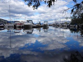 Keywords: reflection harbour selection boats nautical water harbor sky moored
