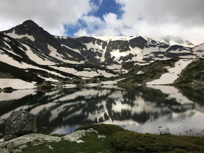 Keywords: reflection lake mountain nature landscape scenic bulgaria cloud