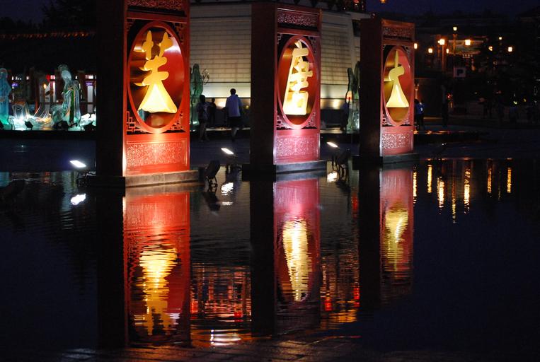 Keywords: reflection night scene lights water city nightlife people urban illuminated light