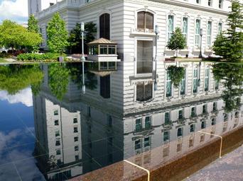 Keywords: reflection pond white building salt lake city water