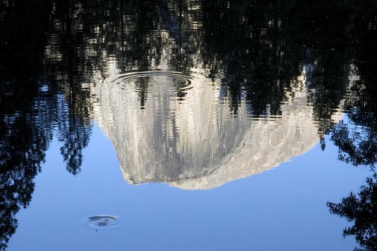 Keywords: reflection water blue fresh pond ripple mountain granite water ripple trees tranquil droplet
