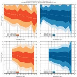 | Keywords: Refractive Error Distribution.svg en Distribution of refractive error in school children Generated with gnuplot using these files file Sorsby 1961-girls dat Refractive error for girls of age 3 15 as a function of age and gender mean ± SD SORSBY A BENJAMIN B SHERIDAN M STONE J LEARY GA Refraction and its components during the growth of the eye from the age of three Memo Med Res Counc 1961;301 Special 1-67 PMID 13915328 Table 5 NOTE values are mean RE standard error SE of mean RE and n SD SE sqrt n age RE D SE D n 3 +2 96 0 19 39 4 +2 33 0 15 51 5 +2 20 0 17 58 6 +1 83 0 19 54 7 +1 98 0 20 57 8 +1 63 0 15 60 9 +2 03 0 24 56 10 +1 33 0 20 63 11 +1 50 0 20 85 12 +1 04 0 19 60 13 +0 96 0 13 61 14 +0 62 0 26 80 15 +0 64 0 181 37 file Sorsby 1961-boys dat Refractive error for boys of age 3 14 as a function of age and gender mean ± SD SORSBY A BENJAMIN B SHERIDAN M STONE J LEARY GA Refraction and its components during the growth of the eye from the age of three Memo Med Res Counc 1961;301 Special 1-67 PMID 13915328 Table 5 NOTE values are mean RE standard error SE of mean RE and n SD SE sqrt n age RE D SE D n 3 +2 33 0 24 56 4 +2 24 0 12 54 5 +2 21 0 16 56 6 +1 71 0 16 56 7 +1 92 0 20 64 8 +1 76 0 19 60 9 +1 52 0 24 50 10 +1 43 0 22 51 11 +1 63 0 23 57 12 +1 19 0 23 67 13 +1 38 0 20 58 14 +0 93 0 38 42 file CLEERE-girls dat Refractive error for girls of age 6 14 1997 to 1998 academic year in the Collaborative Longitudinal Evaluation of Ethnicity and Refractive Error CLEERE Study as a function of age and gender mean ± SD Zadnik et al Ocular component data in schoolchildren as a function of age and gender Optom Vis Sci 2003 Mar;80 3 226-36 PMID 12637834 Table 3 age RE D SD D 6 +0 88 0 86 7 +0 78 1 01 8 +0 64 1 26 9 +0 18 1 64 10 -0 004 1 42 11 +0 03 1 72 12 -0 16 1 55 13 -0 15 1 38 14 -0 46 2 18 file CLEERE-boys dat Refractive error for boys of age 6 14 1997 to 1998 academic year in the Collaborative Longitudinal Evaluation of Ethnicity and Refractive Error CLEERE Study as a function of age and gender mean ± SD Zadnik et al Ocular component data in schoolchildren as a function of age and gender Optom Vis Sci 2003 Mar;80 3 226-36 PMID 12637834 Table 3 age RE D SD D 6 +0 81 0 87 7 +0 72 0 95 8 +0 52 1 11 9 +0 37 1 14 10 +0 34 1 25 11 +0 18 1 57 12 +0 32 1 50 13 -0 12 1 58 14 -0 11 2 78 file Refractive_Error_Distribution gnuplot txt reset set terminal svg size 800 800 fixed fname 'Times' fsize 8 rounded dynamic set output Refractive_Error_Distribution svg set style function lines set multiplot layout 2 2 title Normal Distribution of Refractive Error of Children aged 3 15\n 1961 Data from Sorsby et al 1961 1997 Data from CLEERE Study Zadnik et al 2003 set grid set xtics 1 set ytics 1 set y2tics 1 set xrange 3 15 set yrange -5 +5 set y2range -5 +5 set key left bottom set format y +g set format y2 set xlabel Girls UK 1961 / Age set ylabel Refractive Error RE dpt The Sorsby dataset provides standard error not standard deviation For conversion we need to multiply by sqrt n plot Sorsby 1961-girls dat \ u 1 2-2 58 3 sqrt 4 2+2 58 3 sqrt 4 with filledcurve title RE ± 2 58σ 99 CI lc rgb F5E3D0 \ u 1 2-2 3 sqrt 4 2+2 3 sqrt 4 with filledcurve title RE ± 2σ 95 45 CI lc rgb FAB068 \ u 1 2- 3 sqrt 4 2+ 3 sqrt 4 with filledcurve title RE ± 1σ 68 27 CI lc rgb F04C2B \ u 1 2 with lines notitle lc rgb FAB068 lw 2 set xlabel Boys UK 1961 / Age unset ylabel set format y set format y2 +g plot Sorsby 1961-boys dat \ u 1 2-2 58 3 sqrt 4 2+2 58 3 sqrt 4 with filledcurve title RE ± 2 58σ 99 CI lc rgb C5E1EF \ u 1 2-2 3 sqrt 4 2+2 3 sqrt 4 with filledcurve title RE ± 2σ 95 45 CI lc rgb 2B8CBE \ u 1 2- 3 sqrt 4 2+ 3 sqrt 4 with filledcurve title RE ± 1σ 68 27 CI lc rgb 045A8D \ u 1 2 with lines notitle lc rgb 2B8CBE lw 2 set format y +g set format y2 set xlabel Girls US 1997 / Age set ylabel Refractive Error RE dpt plot CLEERE-girls dat \ u 1 2-2 58 3 2+2 58 3 with filledcurve title RE ± 2 58σ 99 CI lc rgb F5E3D0 \ u 1 2-2 3 2+2 3 with filledcurve title RE ± 2σ 95 45 CI lc rgb FAB068 \ u 1 2- 3 2+ 3 with filledcurve title RE ± 1σ 68 27 CI lc rgb F04C2B \ u 1 2 with lines notitle lc rgb FAB068 lw 2 set xlabel Boys US 1997 / Age unset ylabel set format y set format y2 +g plot CLEERE-boys dat \ u 1 2-2 58 3 2+2 58 3 with filledcurve title RE ± 2 58σ 99 CI lc rgb C5E1EF \ u 1 2-2 3 2+2 3 with filledcurve title RE ± 2σ 95 45 CI lc rgb 2B8CBE \ u 1 2- 3 2+ 3 with filledcurve title RE ± 1σ 68 27 CI lc rgb 045A8D \ u 1 2 with lines notitle lc rgb 2B8CBE lw 2 command to generate SVG gnuplot Refractive_Error_Distribution gnuplot txt own Spitzhörnchen Refractive error Images with Gnuplot source code |
