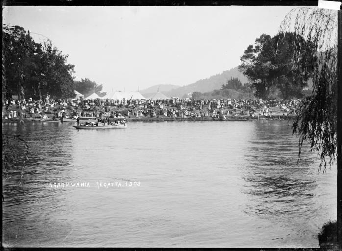 | Keywords: blackandwhite monochrome outdoor water photo border watercourse lake landscape black and white Regatta on the Waikato River at Ngaruawahia, circa 1910. Across the river marquees are visible, with crowds of people lining the river bank. There are several motor boats beside the bank, and one laden with passengers. Photograph taken by William Archer Price. Inscriptions: Inscribed - Photographer's title on negative -bottom left: Ngaruawahia. Regatta. 1303. Quantity: 1 b&w original negative(s). Physical Description: Dry plate glass negative 4.5 x 6.5 inches Regatta on the Waikato River at Ngaruawahia, circa 1910. Price, William Archer, 1866-1948 :Collection of post card negatives. Ref: 1/2-001605-G. Alexander Turnbull Library, Wellington, New Zealand. natlib.govt.nz/records/22788606 Regatta on the Waikato River at Ngaruawahia, circa 1910. Across the river marquees are visible, with crowds of people lining the river bank. There are several motor boats beside the bank, and one laden with passengers. Photograph taken by William Archer Price. Inscriptions: Inscribed - Photographer's title on negative -bottom left: Ngaruawahia. Regatta. 1303. Quantity: 1 b&w original negative(s). Physical Description: Dry plate glass negative 4.5 x 6.5 inches Regatta on the Waikato River at Ngaruawahia, circa 1910. Price, William Archer, 1866-1948 :Collection of post card negatives. Ref: 1/2-001605-G. Alexander Turnbull Library, Wellington, New Zealand. natlib.govt.nz/records/22788606 |