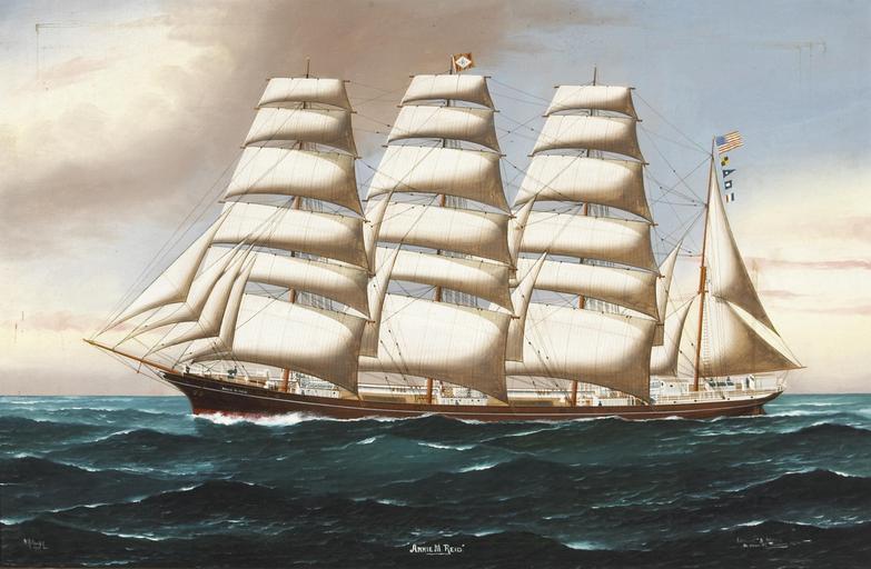 | Keywords: Reginald Arthur Borstel - Portrait of the Four Masted Barque Annie M Reid.jpg oil canvas in 24 35 accession number object history credit line signed R A Bostel 1918 http //www bonhams com/auctions/14995/lot/1621/ Bonhams PD-old-auto-1923 1922 Reginald Arthur Borstel Annie M Reid ship 1892 Oil paintings of seascapes 20th-century sailing ships in paintings 1918 paintings Images from Bonhams | ||||