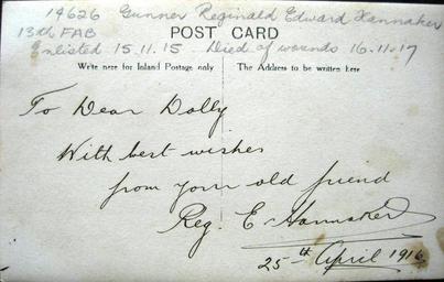 | Keywords: reginald edward hannaker reginaldedwardhannaker australia soldier military ww1 army albert park grammar school albertparkgrammarschool gunner 13th field artillery brigade 13thfieldartillerybrigade kia writing document text drawing sketch whiteboard texture cartoon His war records: discoveringanzacs.naa.gov.au/browse/records/216120 (found on ebay) His war records: discoveringanzacs.naa.gov.au/browse/records/216120 (found on ebay) | ||||