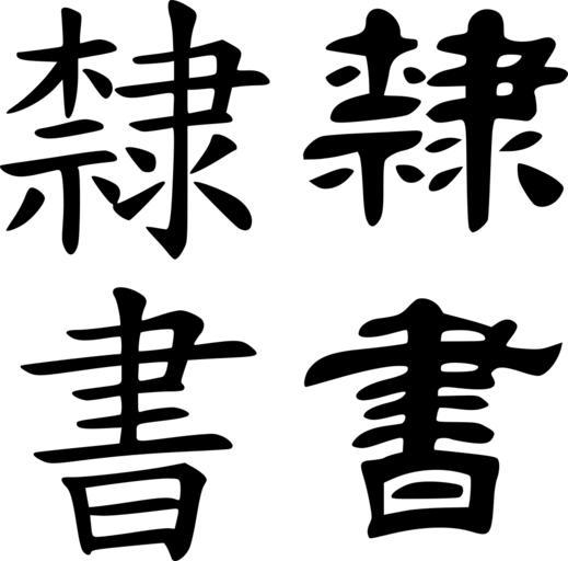 Keywords: Regular and clerical script eg.svg Regular script left and clerical script right example 隸書 clerical script in Chinese Clerical_Eg png 2010-12-11 03 26 UTC Clerical_Eg png Someone from English Wikipedia derivative work Tomchen1989 <span class signature-talk >talk</span> The simple text and common typeface should considered in the Public Domain PD And my SVG conversion work is also in the PD converted to SVG Tomchen1989 Clerical_Eg png clerical script</nowiki> Uploaded with derivativeFX Clerical script |