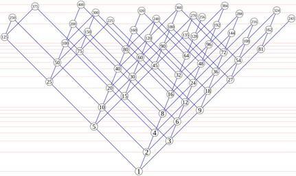 | Keywords: Regular divisibility lattice.svg A Hasse diagram of divisibility relationships among regular numbers up to 400 As shown by the horizontal light red lines the vertical position of each number is proportional to its logarithm Inspired by similar diagrams in a paper by Kurenniemi http //www beige org/projects/dimi/CSDL2 pdf en wikipedia 2007-03-14 David Eppstein wikipedia en David Eppstein Source code The Python source code for generating this image <pre> from math import log limit 400 radius 17 margin 4 xscale yscale 128 skew 0 285 def A051037 yield 1 seq 1 spiders 2 2 0 0 3 3 0 1 5 5 0 2 while True x p i j min spiders if x seq-1 yield x seq append x spidersj p seqi+1 p i+1 j def nfactors h p nf 0 while h p 0 nf + 1 h // p return nf seq for h in A051037 if h > limit break seq append h nfactors h 2 nfactors h 3 nfactors h 5 leftmost max k for h i j k in seq rightmost max j for h i j k in seq leftwidth int 0 5 + log 5 leftmost xscale + radius + margin rightwidth int 0 5 + log 3 rightmost xscale + radius + margin width leftwidth + rightwidth height int 0 5 + log limit yscale + 2 radius + margin def place h i j k logical coordinates x j log 3 - k log 5 + i skew y log h physical coordinates x x xscale + leftwidth y -y yscale + height - radius - margin return x y print < xml version 1 0 encoding utf-8 > < DOCTYPE svg PUBLIC -//W3C//DTD SVG 1 1//EN http //www w3 org/Graphics/SVG/1 1/DTD/svg11 dtd > <svg xmlns http //www w3 org/2000/svg version 1 1 width d height d > width height print ' <g style fill none;stroke ffaaaa; >' l 1 base 1 while l < limit y -yscale log l + height - radius - margin print ' <path d M0 0 2fL d 0 2f />' y width y l + base if l 10 base base l print </g> print ' <g style fill none;stroke-width 1 5;stroke 0000cc; >' def drawSegment p q x1 y1 p x2 y2 q print ' <path d M 0 2f 0 2fL 0 2f 0 2f />' x1 y1 x2 y2 for h i j k in seq x y place h i j k if i > 0 drawSegment place h//2 i-1 j k x y if j > 0 drawSegment place h//3 i j-1 k x y if k > 0 drawSegment place h//5 i j k-1 x y print </g> print ' <g style fill ffffff;stroke 000000; >' for h i j k in seq x y place h i j k print ' <circle cx 0 2f cy 0 2f r d />' x y radius pairs of first value with size size of that value fontsizes 1 33 5 30 10 27 20 24 100 20 200 18 for h i j k in seq x y place h i j k if h in fontsizes print </g> print ' <g style font-family Times;font-size d;text-anchor middle; >' fontsizesh lower fontsizesh / 3 print ' <text x 0 2f y 0 2f > d</text>' x y+lower h print </g> print </svg> </pre> original upload log page en wikipedia Regular_divisibility_lattice svg 2007-03-14 05 08 David Eppstein 1363×809×0 13167 bytes <nowiki>A Hasse diagram of divisibility relationships among regular numbers up to 400 Inspired by similar diagrams in a paper by Kurenniemi http //www beige org/projects/dimi/CSDL2 pdf </nowiki> Files by User David Eppstein from en wikipedia Divisibility lattice Hasse diagrams Images with Python source code |