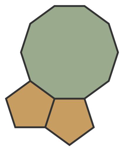 | Keywords: Regular polygons meeting at vertex 3 5 5 10.svg Combinations of regular polygons that can meet at a vertex For Euclidean tilings the internal angles of the polygons meeting at a vertex must add to 360 degrees There are seventeen combinations of regular polygons whose internal angles add up to 360 degrees each being referred to as a species of vertex; in four cases there are two distinct cyclic orders of the polygons yielding twenty-one types of vertex Only eleven of these can occur in a uniform tiling of regular polygons In particular if three polygons meet at a vertex and one has an odd number of sides the other two polygons must be the same If they are not they would have to alternate around the first polygon which is impossible if its number of sides is odd These arrangements are here enumerated 3 polygons of sides 3 7 42 3 polygons of sides 3 8 24 3 polygons of sides 3 9 18 3 polygons of sides 3 10 15 3 polygons of sides 3 12 12 3 polygons of sides 4 5 20 3 polygons of sides 4 6 12 3 polygons of sides 4 8 8 3 polygons of sides 5 5 10 3 polygons of sides 6 6 6 4 polygons of sides 3 3 4 12 4 polygons of sides 3 4 3 12 4 polygons of sides 3 3 6 6 4 polygons of sides 3 6 3 6 4 polygons of sides 4 4 4 4 4 polygons of sides 3 4 4 6 4 polygons of sides 3 4 6 4 5 polygons of sides 3 3 3 3 6 5 polygons of sides 3 3 3 4 4 5 polygons of sides 3 3 4 3 4 6 polygons of sides 3 3 3 3 3 3 2013-06-01 14 17 54 own Dllu cc-zero Polygons that can meet at a vertex Uploaded with UploadWizard Regular decagons Regular pentagons |