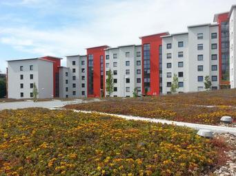 Keywords: rehabilitation new building green roof red white window flat roof extensive green roofs building architecture home