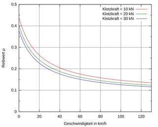 | Keywords: Reibwerts der Graugussbremsklotzsohle über der Geschwindigkeit.svg de Diagramm des Reibwerts der Graugussbremsklotzsohle P10 und P14 über der Geschwindigkeit in Abhängigkeit von verschiedenen Klotzkräften Grundlage ist die Reibwertgleichung nach Karwatzki 2012-02-26 own Simeon Langenbahn cc-zero Uploaded with UploadWizard Railway brake diagrams | ||||