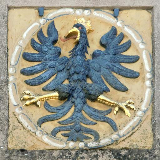 | Keywords: Reichsadler von Michael Scherbaum.png de Der aus Sandstein gehauene Stadtadler am Baldinger Tor in Nördlingenaus wurde bei der Restaurierung des Tores 1974 von dem Steinmetzmeister Michael Scherbaum an der Feldseite des Vorwerks ergänzt Gefasst und vergoldet hat ihn Karl Gregori own Zimtstern 2k 2010-09-29 Baldinger Tor Nördlingen Sculptures in Nördlingen Reliefs of coats of arms in Landkreis Donau-Ries Coats of arms in Nördlingen | ||||