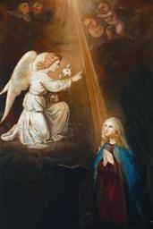 | Keywords: Reichshoffen StMichel 42.JPG Alsace Bas-Rhin Reichshoffen Eglise Saint-Michel Autel secondaire Annonciation 1774 own 2015 Ralph Hammann cc-by-sa-4 0 Taken with Panasonic Lumix DMC-FZ1000 Photographs of Reichshoffen by Ralph Hammann PM67000649 IM67007616 classé Artwork / Œuvre d'art / Kunstwerk oil canvas Eglise Saint-Michel Reichshoffen Autel secondaire IM67007616 object history Les tableaux furent peints par Jean Schlau de Strasbourg ; la polychromie fut réalisée par Koch de Haguenau ; tableaux restaurés par P Rudloff en 1920 c'est-à-dire repeints à 90 pour cent ; seuls les putti seraient encore d'origine other versions Ralph Hammann PD-old accession number Altar of Annunciation of Église Saint-Michel Reichshoffen Objets monuments historiques in Bas-Rhin church paintings 18th-century church paintings in Alsace 20th-century church paintings in Alsace Paintings of Annunciation in France Neoclassical paintings in Alsace 1774 works in Alsace 1920 works in Alsace Paintings of angels in France Gabriel from Annunciation scene |