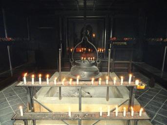 | Keywords: Reikado Hall - DSC02078.JPG Reikado Hall atop Mount Misen on Miyajima Hatsukaichi Hiroshima Japan Said to be spot where Kūkai 空海 known posthumously as Kōbō-Daishi 弘法大師 the founder of Shingon Buddhism performed ascetic practices in the year 806 AD The fire within this building is claimed to have burned without stop since that time I took this photograph 2011-12-10 00 19 23 Daderot Public domain Reikado Hall | ||||