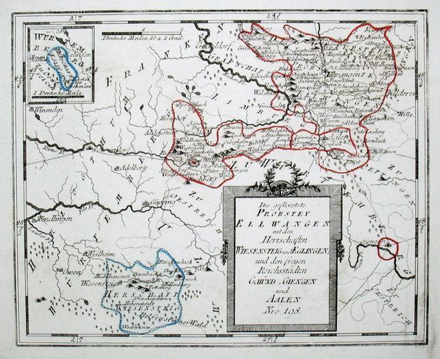 Keywords: Reilly 198.jpg Die gefürstete Probstey Ellwangen mit den Herrschaften Wiesensteig und Eglingen und den freyen Reichsstädten Gmünd Giengen und Aalen Nro 198 Kolorierter Kupferstich http //cgi ebay de/ws/eBayISAPI dll ViewItem item 350286716120 1792/1793 Creator Franz Johann Joseph von Reilly PD-art PD-old-100 Schauplatz der fünf Theile der Welt Old maps of Baden-Württemberg |