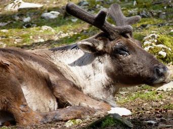 Keywords: reindeer animal wild antler nature lying fur forest brown furry