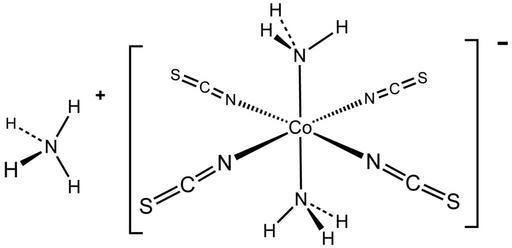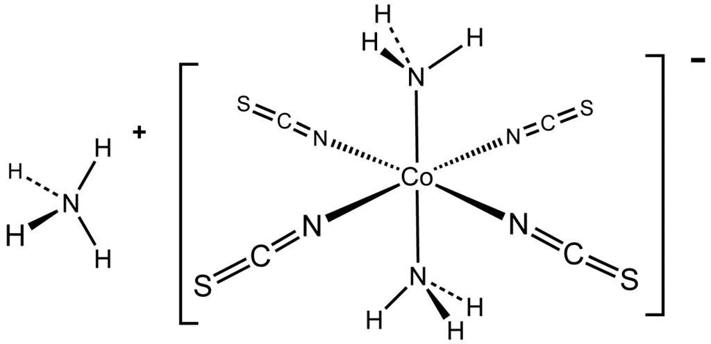 Keywords: Reinecke's salt (molecular diagram).png 2006-12-27 own assumed Smokefoot Cobalt complexes Thiocyanato complexes Ammine complexes Ammonium compounds