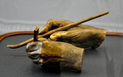 | Keywords: Reinhold Begas Menzels Hände Alte Nationalgalerie img01.jpg Menzels Hände die linke Hand mit Bleistift die rechte Hand mit Pinsel Bronze vergoldet 1904 Alte Nationalgalerie Berlin own 2012-06 Creator Reinhold Begas Photo User Museumsinsulaner Reinhold Begas Sculptures in the Alte Nationalgalerie Portraits of Adolph von Menzel Sculptures of hands 1904 sculptures in Berlin Pencils in art Painters at work | ||||