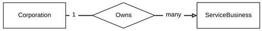 Keywords: Relational DB Example ER Diagram Corporation.svg en An example of a simple Entity-Relationship diagram for illustrating the concept showing a Corporation entity owning multiple Service Businesses own Fishpi 2010-06-27 Databases