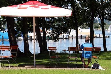 Keywords: relax person human rest pause rest break recovery einkehr seat parasol sit chair garden chair out folding chair