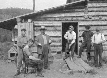 | Keywords: haircut camping camp log cabins logcabins recreation leisure barber drinking smoking cigars pipes ontario canada history monochrome blackandwhite outdoor building architecture black and white Date: Unknown Description: This photograph shows six men in front of a log cabin (location unknown). The men appear to be enjoying their downtime by catching up on games, drinking, and general grooming. Accession No.: 979.1.13 Date: Unknown Description: This photograph shows six men in front of a log cabin (location unknown). The men appear to be enjoying their downtime by catching up on games, drinking, and general grooming. Accession No.: 979.1.13 |