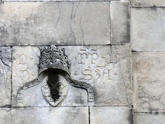 | Keywords: Relief on Pieve di Sant Andrea (Sarzana, Italy) pope.jpg en Relief on a wall of the church Sant Andrea in Sarzana Liguria Italy in memory of the pope Nicolaus V born in this town The inscription N PP V D SZA means Niccolo V Papa V di Sarzana fr Relief sur un mur de l'église Sant Andrea à Sarzana Ligurie Italie dédié au pape Nicolas V né dans cette ville L'inscription N PP V D SZA signifie Niccolo V Papa V di Sarzana sf 2016-06-16 Tangopaso 44 112928 9 961008 heading ESE Exteriors of Pieve di Sant'Andrea Sarzana Nicolaus V Reliefs in Liguria |