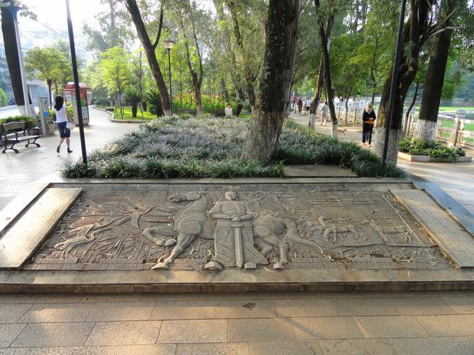 Keywords: Reliefs in Green Lake Park - Kunming, Yunnan - DSC01880.JPG Relief in Green Lake Park Kunming Yunnan China I took this photograph 2011-08-07 20 20 40 Daderot Public domain Reliefs in Green Lake Park