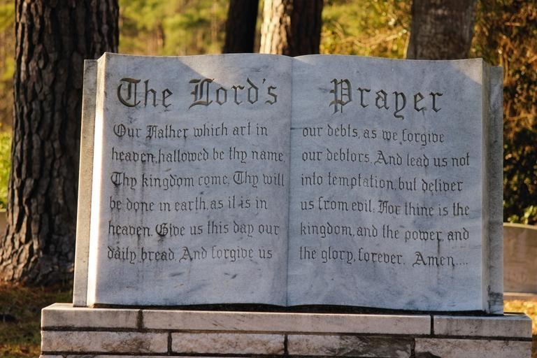 Keywords: religious bible lords prayer nature cemetery grave site grass outside tree