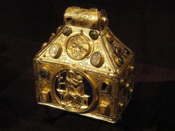 | Keywords: Reliquary in Purse Form, about 1320 AD, German, Upper Rhine, Southern Swabia, gilded copper, glass, precious stones, over wooden core - Cleveland Museum of Art - DSC08578.JPG en Exhibit in the Cleveland Museum of Art Cleveland Ohio USA Photography was permitted in the museum without restriction This artwork is old enough so that it is in the public domain Daderot 2012-09-07 14 09 46 Daderot cc0 cc0 Medieval art in the Cleveland Museum of Art Reliquaries in the United States | ||||
