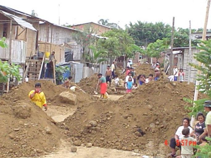 | Keywords: Rellenando lotes 2.JPG Bastión Popular todos colaboran en el relleno de los lotes para mejorar las condiciones sanitarias de las viviendas Lugar Norte de Guayaquil Barrio de Bastión Popular Autor Programa ZUMAR Fecha 2004 2006-04-19 own assumed Alfredobi Bastión Popular ZUMAR Project Sanitation in Ecuador |