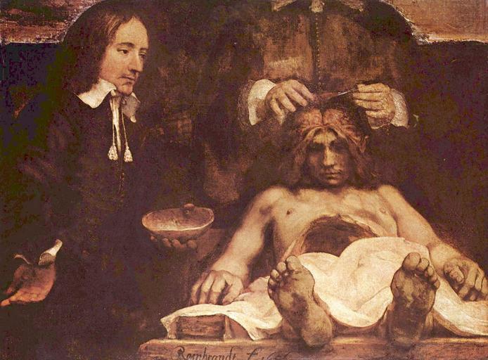 | Keywords: Rembrandt Harmensz. van Rijn 008.jpg Artwork Creator Rembrandt LangSwitch Rembrandt ™s second anatomy lesson is a fragment of a group portrait In 1723 most of the canvas was destroyed by fire The remaining central section shows Dr Jan Deijman performing an autopsy on a dead men ™s brains The assistant is holding the top of the skull Rembrandt has presented the dead man in a foreshortening so that the dissecting table appears to be protruding out of the picture Rembrandts tweede anatomische les is een fragment van een groepsportret In 1723 ging het grootste gedeelte van het doek bij een brand verloren Op het bewaard gebleven middengedeelte is te zien hoe Dr Jan Deijman sectie verricht op de hersenen van een dode De assistent houdt de schedelkap in de hand Doordat Rembrandt de dode heeft weergegeven in verkort lijkt de snijtafel uit het schilderij te steken 1656 Oil on canvas cm 100 134 Institution Amsterdam Museum accession number SA 7394 object history 1656 1 commission Chirurgijnsgilde Anthoniswaag Amsterdam ProvenanceEvent 1798 conveyance Commissie van Geneeskundig Toevoorzicht ProvenanceEvent 1841 purchase Chaplin art dealer England Chirurgijnsweduwenfonds by 1879 LangSwitch Rev ds E Price Owen -1879 Cheltenham - 1879 1881 deposit LangSwitch das the le het South Kensington Museum today Victoria Albert Museum London ProvenanceEvent 1882 purchase LangSwitch die Stadt Amsterdam the city of Amsterdam la ville d'Amsterdam de Stad Amsterdam ProvenanceEvent 1885 loan LangSwitch das the au het Rijksmuseum Amsterdam Amsterdam inv SK-C-85 LangSwitch die Stadt Amsterdam the city of Amsterdam la ville d'Amsterdam de Stad Amsterdam or 1993 1994 loan LangSwitch das the au het Amsterdams Historisch Museum today Amsterdam Museum Amsterdam inv SA 7394 LangSwitch die Stadt Amsterdam the city of Amsterdam la ville d'Amsterdam de Stad Amsterdam exhibition history De Rembrandt Tentoonstelling te Amsterdam 97 Amsterdam in de loop der eeuwen 560 Rembrandt tentoonstelling ter plechtige herdenking van het 300-jarig bestaan der Universiteit van Amsterdam 32 Hollandse schilderkunst van Jeroen Bosch tot Rembrandt 87 Rembrandt Sextiosex bilder frÃ¥n utställningen i Nationaluseum 34 Rembrandt The master and his workshop Berlin/Amsterdam/London Berlin Amsterdam and London 44 Rembrandt Rembrandt 33 credit line 38545 LangSwitch Anatomy lesson of Dr Jan Deijman Anatomische les van Dr Jan Deijman fragment 3047 LangSwitch The anatomy lesson of Doctor Joan Deyman De anatomische les van dr Joan Deyman 40007436 La leçon d'anatomie du docteur Joan Deyman 20186113 Die Anatomiestunde des Dr Joan Deyman 1620-1666 Fragment The Yorck Project 10 000 Meisterwerke der Malerei DVD-ROM 2002 ISBN 3936122202 Distributed by DIRECTMEDIA Publishing GmbH http //mail wikipedia org/pipermail/wikide-l/2005-April/012195 html Dr Deijman ™s Anatomy Lesson fragment by Rembrandt jpg Version from ahm adlibsoft com PD-old-100 PD-Art-YorckProject The anatomy lesson of Dr Jan Deyman Surgeons from the Netherlands Deyman 1619 births 1666 deaths |
