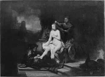 | Keywords: Rembrandt van Rijn 194 black and white 01.jpg or workshop 1643 oil oak panel cm 57 2 76 2 Institution Metropolitan Museum of Art Gallery 615 accession number 14 40 651 object history by 1734 Willem Six 1662-1733 Amsterdam ProvenanceEvent 1734-05-12 sale Hoogenbergh Willem Six Amsterdam Schoemaker ten Brink Amsterdam 56 Price NLG 265 by 1741 Gerard Bicker 1687-1753 Heer van Zwieten ProvenanceEvent 1741-04-12 sale De Hond Gerard Bicker Heer van Zwieten The Hague 130 Price NLG 350 by 1763 Comte de BrĂĽhl Dresden by 1780 Antoine Poullain -1780 Paris between 1780-03-15 1780-03-21 sale Le Brun Antoine Poullain Paris Le Brun Paris 37 Price livres 2400 ProvenanceEvent 1791-04-20 sale Le Brun Paris Paris 53 Price livres 1000 by 1814 Alexandre Delahante London ProvenanceEvent 1814-06-03 sale Andrew Geddes 1783-1844 Alexandre Delhante London Phillips London 25 Price GBP 105 by 1830 Sir Thomas Lawrence 1769-1830 London ProvenanceEvent 1830-05-15 sale John Smith London Sir Thomas Lawrence London Chistie ™s London 120 Price GBP 157 10 ProvenanceEvent 1830 purchase G J Vernon John Smith London ProvenanceEvent 1831-04-16 sale Thomas Emmerson London G J Vernon Christie ™s London 48 Price GBP 160 13 ProvenanceEvent 1832-06-16 sale Wilson Thomas Emmerson London Phillips London 135 Price GBP 252 ProvenanceEvent 1832 acquisition Phillips London by 1841 Colonel de BirĂ© Brussels ProvenanceEvent 1841-03-25 sale Colonel de BirĂ© HĂ´tel HĂ©ris 16 Rue des Jeuneurs Paris 6 Price FFR 7880 by 1859 Jhr Hendrik Steengracht van Oosterland 1808-1875 The Hague ProvenanceEvent 1875 inheritance Jhr Hendricus Adolphus Steengracht 1836-1912 heer van Duivenvoorde Voorschoten en Veur The Hague Jhr Hendrik Steengracht van Oosterland The Hague ProvenanceEvent 1913-06-09 sale Duveen art dealer Paris Jhr Hendricus Adolphus Steengracht The Hague Georges Petit Paris 61 Price FFR 1000000 ProvenanceEvent 1913 purchase Benjamin Altman -1913 New York City Duveen Paris Price USD 213621 50 provenanceEvent 1913 bequest LangSwitch das the au het Metropolitan Museum of Art New York Benjamin Altman New York credit line Rembrandt fr / 1643 signature and date bottom left http //www metmuseum org/Collections/search-the-collections/110001843 Metropolitan Museum of Art Online Catalog LangSwitch als as comme als Rembrandt The Toilet of Bathsheba <br /> 49524 Rembrandt or workshop LangSwitch The toilet of Bathsheba 2 Samuel 11 2 Batseba aan haar toilet 2 Samuel 11 2 exhibition history De Rembrandt Tentoonstelling te Amsterdam 56 The Art of Rembrandt Rembrandt 1952 The Painter's Light 19 Rembrandt/Not Rembrandt in The Metropolitan Museum of Art 10 The Age of Rembrandt Dutch paintings in the Metropolitan Museum of Art BethsabĂ©e JPG Rembrandt - The Toilet of Bathseba JPG Version from www metmuseum org PD-old-100 ImageNote 1 453 1704 168 79 2536 1872 2 LangSwitch Signed and dated Gesigneerd en gedateerd Rembrandt ft / 1643 ImageNoteEnd 1 Paintings by Rembrandt in the Metropolitan Museum of Art 1643 Paintings of Old Testament stories by Rembrandt 1643 Toilet Of Bathsheba |