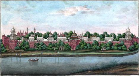 | Keywords: Reminiscences of Imperial Delhi East face of the palace of the Red Fort Delhi.png The following are two views of the Palace at Dehly from the River or East Side The first includes the whole length of line from the Shah Boorj or Royal Tower on the right to the Ussud Boorj on the left Ussud literally signifies a lion but as tradition does not in any way connect this animal with the building in question the latter may be properly denominated the Tower of Strength In the second are shown a portion of the Dewan e Khafs or Hall of Audience on the right The Summun Boorj or Octagon Tower in the centre a very favorite apartment of the present King and in which all interviews with the agent of a strictly Private nature are held On the left the female apartments East face of the palace of the Red Fort Delhi Inscribed below with the names of the buildings shah burj; moti mahal; asad burj; and naqsh-i rukar-i qil ™a-i Dar al-Khalafa-i Shajahanabad az-taraf-i ˜amal-i Mazhar ˜Ali Khan Closer view of the Musamman Burj The Musamman Burj is part of the Khas Mahal the private chambers of the emperor in the Palace of the Red Fort Musamman Burj is a semi-octagonal tower with marble screens on four sides and a jharokha in the centre where the emperor appeared every morning before his subjects The balcony projecting from the centre was constructed by Akbar II r 1806-37 in 1808-09 according to an inscription under the arches From 'Reminiscences of Imperial Delhi ™ an album consisting of 89 folios containing approximately 130 paintings of views of the Mughal and pre-Mughal monuments of Delhi as well as other contemporary material with an accompanying manuscript text written by Sir Thomas Theophilus Metcalfe 1795-1853 the Governor-General ™s Agent at the imperial court Acquired with the assistance of the Heritage Lottery Fund and of the National Art-Collections Fund http //www bl uk/onlinegallery/onlineex/apac/addorimss/e/019addor0005475u00034vrb html 1843 Metcalfe Sir Thomas Theophilus 1795-1853 PD-Art-100 Reminiscences of Imperial Delhi Red Fort in art |