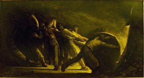 | Keywords: Removal of a Broken Crucible.jpg Artwork Creator Constantin Meunier en Removal of a Broken Crucible Törött öntőforma fr Le creuset brisé nl De gebarsten smeltkroes Oil on canvas cm 130 5 238 5 Brussels Meunier Museum Photo by Szilas in the Meunier Museum 1884 PD-old-100 Other versions <gallery> File Meunier-enlèvement du creuset brisé jpg Musée des Beaux-Arts de Bruxelles </gallery> Paintings by Constantin Meunier Collections of the Meunier Museum factories in art Crucibles Paintings of men at work |