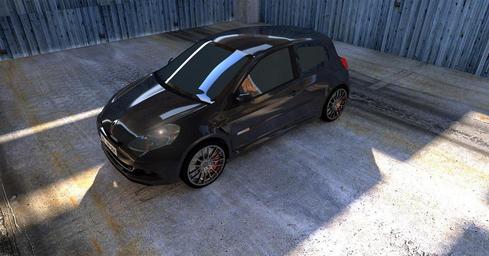 Keywords: renault clio sport autos sports car automobile contour metallic sun reflections shadow hall concrete wall monochrome 3d 3d model computer graphics machine 3d visualization pirohd rendering finish
