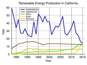 | Keywords: Renewable energy production in California.svg en Renewable energy electricity production in California from 1983 to 2015 Data from http //energyalmanac ca gov/electricity/ California Energy Commission 2016-03-30 own Delphi234 other versions Generated with Wikimedia SVG Chart SVG Chart/box cc-zero Renewable energy in the United States Geothermal energy in California Hydroelectric power in the United States Solar power in California Wind power in California | ||||