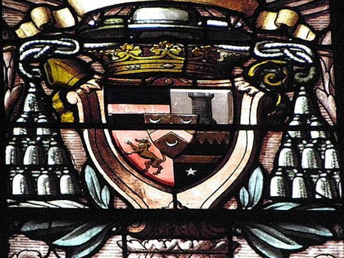 | Keywords: Rennes (35) Métropole Saint-Pierre Armes de François Bareau de Girac.jpg fr Armes de François Bareau de Girac Vitrail de la métropole Saint-Pierre de Rennes 35 own GO69 2011-01-03 Descriptif é cartelé au 1er d'argent à la fasce de gueules; au 2ème d'argent à la tour de sable ; au 3ème de gueules au lion d'argent; au 4ème d'azur à la fasce d'or soutenue d'une étoile de même en pointe au chef danché d'or; sur le tout d'or au chevron de gueules accompagné de trois croissants de même De Courcy Nobiliaire de Bretagne Tresvaux Église de Bretagne Dans les verrières de la Métropole on attribut à Mgr de Girac écartelé au 1er d'azur à la fasce de gueules; au 2ème d'argent à la tour de sable; au 3ème de gueules au lion rampant d'or; au 4ème d'azur à la fasce d'or soutenue d'une étoile d'argent en pointe au chef danché d'or; sur le tout d'or au chevron de gueules accompagné de trois croissants d'argent Cc-zero Coats of arms of bishops of the Roman Catholic Archdiocese of Rennes on stained glass windows Stained glass windows of Cathédrale Saint-Pierre Rennes Taken with Olympus SP-590UZ |