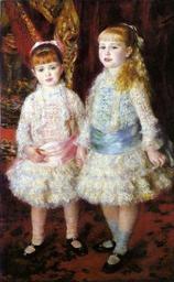 | Keywords: Renoir - rosaeazul04.jpg Artwork Creator Pierre-Auguste Renoir Pink and Blue - The Cahen d'Anvers Girls Rosa e Azul - As Meninas Cahen d'Anvers 1881 Oil on canvas cm 119 74 Institution Museu de Arte de São Paulo http //www masp art br/masp2010/acervo_detalheobra php id 272 other versions <gallery>Renoir Mlles Cahen d Anvers jpg 499 × 800 pixels version </gallery> PD-old-auto 1919 DEFAULTSORT 1881; Cahen d'Anvers Girls Paintings by Pierre-Auguste Renoir in the Museu de Arte de São Paulo 1881 oil on canvas paintings Portrait 1881 portrait paintings from France 19th-century oil portraits of girls at full length 19th-century portrait paintings in Brazil Female hair fashion in art Females with white dresses in art Impressionist paintings in Brazil Impressionist portraits of girls Paintings of children from France Cahen d'Anvers Portrait paintings of standing girls Two females in art Portraits of sisters Waist sashes in art |
