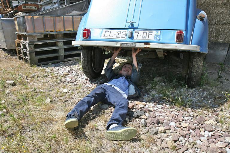Keywords: repairing master old car boy fun citroen blue work child help