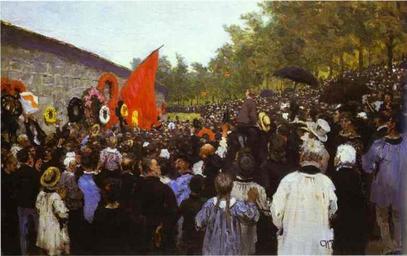 | Keywords: Repin Comune.JPG Artwork mld Anniversario della Comune di Parigi al Père-Lachaise olio su tela Museo Tretiakov Mosca The Annual Memorial Meeting Near the Wall of the Communards in the Cemetery of Père-Lachaise in Paris Rassemblement au Père Lachaise en mémoire des victimes de la Commune 15 мая 1883 года мы с В В Стасовым были в толпе коммуна ов на Pere Lachaise у знаменитой стены где коммуна ы асст еливались еще так недавно Все полны были только что пе ежитыми ст ашными событиями Тепе ь здесь был большой общественный п аздник - эта стена была щед о ук ашена букетами к асных цветов Публика все п ибывала и высокая стена сплошь ук асилась цветами е те яя в емени в бывшем со мной до ожном альбоме я за исовал всю эту сцену Толпа иногда до того сжимала меня что мне невозможно было п одолжать залезали впе ед и заслоняли о ф анцузы - на од деликатный И ско о меня взяли под свое пок овительство несколько доб одюжих абочих вско е очистилось впе еди возможное п ост анство и за моей спиной я услышал одоб ение Соседи осведомились кто я и когда узнали что усский они весело п иветствовали усского - своего тогда еще внове - союзника В емя летело и я успел заче тить всю ка тину а д угой день у себя под свежим впечатлением я начал масляными к асками писать свою ка тинку» Ка тина «Годовой поминальный митинг у Стены коммуна ов на кладбище Пе -Лашез в Па иже» была впоследствии п иоб етена И С Ост оуховым и из его соб ания поступила в Госуда ственную Т етьяковскую гале ею где ныне и находится на х анении 1883 oil canvas Tretyakov Gallery object history exhibition history credit line accession number http //www abcgallery com/R/repin/repin32 html PD-old-100 Genre paintings by Ilya Yefimovich Repin Politics in the 19th century Paintings of the Père-Lachaise Cemetery Mur des Fédérés Oil paintings Père-Lachaise Cemetery in the 19th century 19th-century genre paintings in the Tretyakov Gallery Paintings by Ilya Repin in the Tretyakov Gallery |