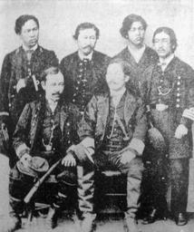 | Keywords: Republic of Ezo members.jpg en Leaders of the Republic of Ezo with the President Enomoto Takeaki front right 1869 a Japanese man 榎 武揚 ja 荒井郁之助 ja 岡磐吉 林薫三郎 榎 対馬 小 雅之 Takeaki Enomoto Ikunosuke Arai Bankichi Matsuoka etc The Japanese book 幕 ・明治・大正 回顧八十年史 Memories for 80 years Bakumatsu Meiji Taisho in 1933-1934 reprint published by 洋文化協 The Eastern Culture Association The contributor has this source Other versions unknown PD-Japan-oldphoto Black and white group photographs of men Group photographs of military people Black and white portrait photographs of military people in uniform Black and white photographic portraits of men of Japan Photographs of Enomoto Takeaki Ikunosuke Arai Photographs of Hayashi Tadasu People of the Republic of Ezo People in 1869 People of the Meiji era |