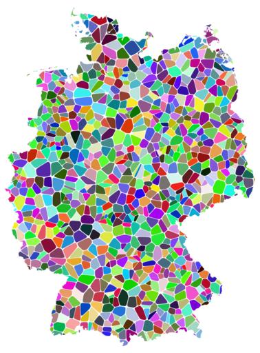 Keywords: republic germany deutschland map geography cartography outline europe country nation borders eu european union colorful prismatic chromatic rainbow tiles tiled voronoi abstract geometric art