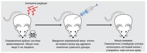 | Keywords: Rescue of irradiated mouse.svg uk Схема досліду у якому миші уйнують систему к овотво ення шляхом оп омінення летальною дозою іонізуючої адіації Життєздатність миші відновлюється після пе есадки клітин кісткового мозку від генетично сумісного доно а 8/06/2011 own Zlir'a cc-zero Uploaded with UploadWizard Hematopoiesis |