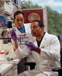 | Keywords: Researcher checks test tubes.jpg An African American male researcher checks test tubes as an AfricanAmerican female cancer researcher looks on Topics/Categories Locations -- NIH National Cancer Institute -- People People -- Health Professional Science and Technology -- Laboratory Techniques/Equipment Type Color Photo Source National Cancer Institute Rhoda Baer Photographer 7998 2008-07-24 Reuse Restrictions None - This image is in the public domain and can be freely reused Please credit the source and/or author listed above Rhoda Baer Photographer PD-USGov-HHS-NIH Media from National Cancer Institute Visuals Online Images uploaded by Fæ |