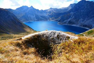 Keywords: reservoir dam lüner lake mountains view outlook lake artificial blue building montafon vorarlberg austria