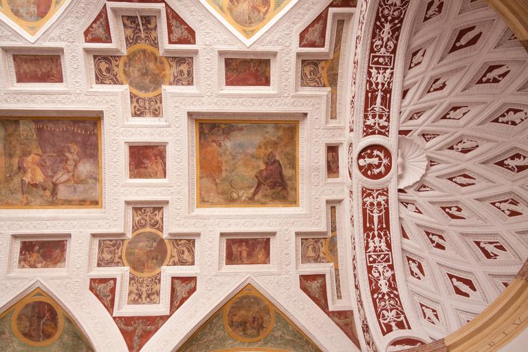 Keywords: residence renaissance courtyard historically palace facade arcades landshut architecture building city palace duke ludwig the tenth bavaria master builders bernhard zwitzel italian image cycle fresco mythological