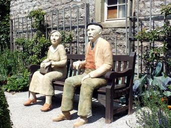 Keywords: rest sculpture man and woman pair bank summer garden wait silent art