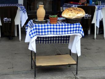 Keywords: restaurant dining table setting food dinner table rustic counter top