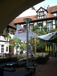 Keywords: restaurant truss courtyard seating arrangement sail shade parasol screen pillow shade tree architecture home building facade chairs glass window