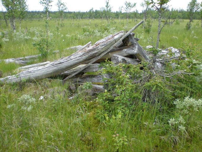 Keywords: ResterAvHolada.JPG en Old barn situated in Grena north of Swdeden sv Rester av gammal hölada i Grena Pauträsk Storuman Västerbotten own Ebcberg 2008 Storuman Municipality Ruins in Sweden Wetlands of Sweden