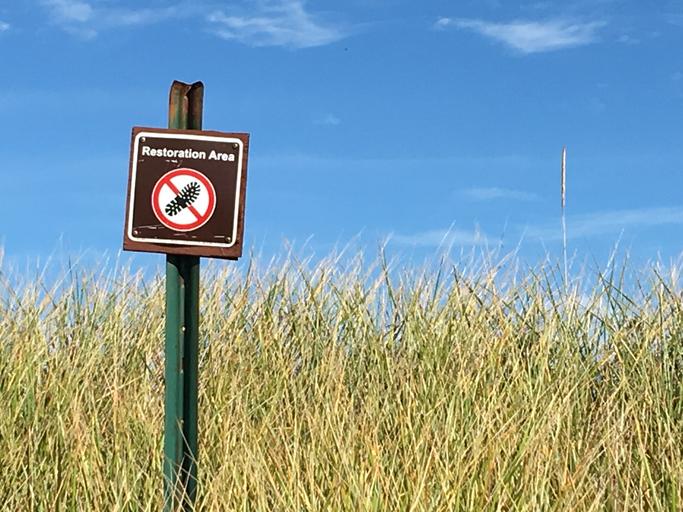 | Keywords: Restoration Area Sign.jpg en A sign warning beachgoers against trespassing across a protected plant wildlife restoration area on a Sand Beach dune adjacent to the Atlantic Ocean in Acadia National Park 2016-10-08 10 17 47 own MarkBuckawicki other versions 44 329303 -68 182847 heading 351 5974025974026 cc-zero Dunes Acadia National Park Plantlife Nature Reserves |